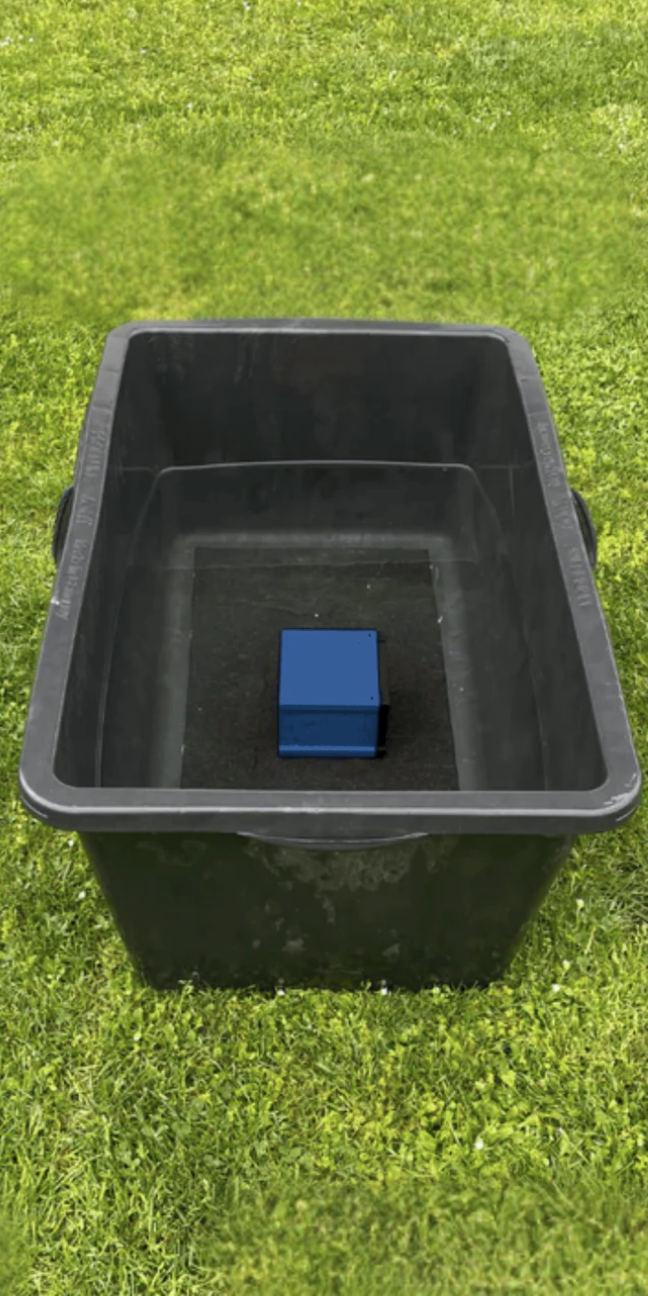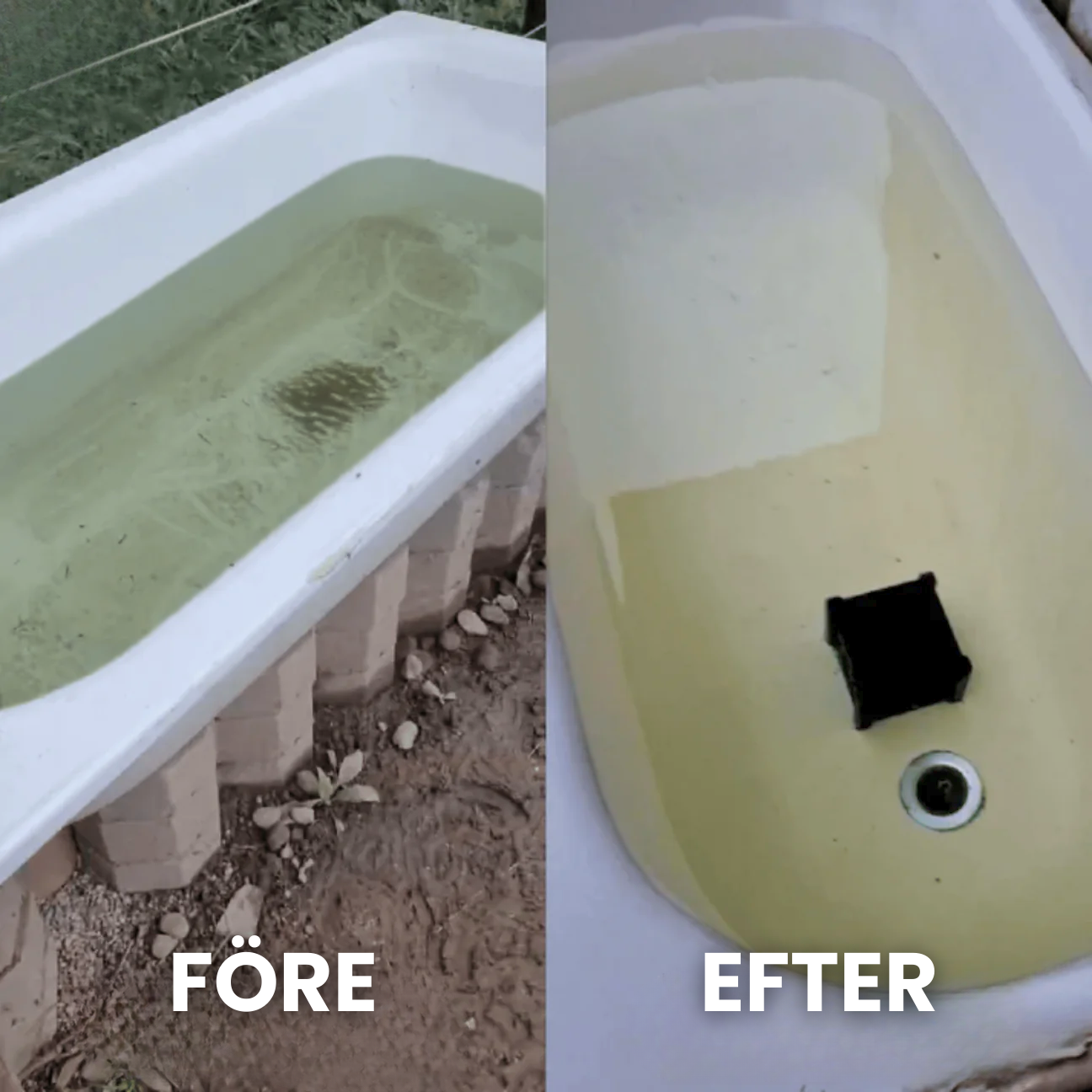 LÀgg ner kuben med den svarta delen Ät sidan (inte uppÄt) i hÀstarnas vattenkar. Den börjar rena och cirkulera vattnet direkt, inga extra steg krÀvs.